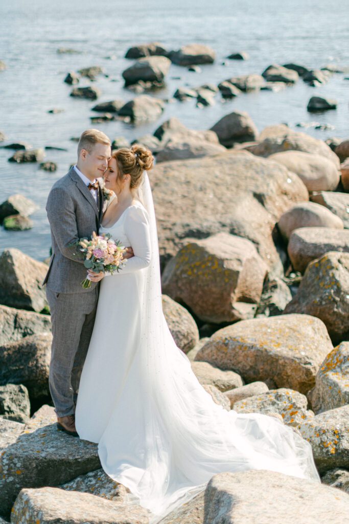 Hääpäivänä otetuista kuvista näkyy tietenkin myös hääpäivän sää ja vuodenaika. Dokumentaarisesti ajateltuna se on tärkeää ja kiinnostavaa, asia joka on jollakin tavalla aina merkityksellinen hääpäivää muistellessa. Kuvausmielessä ratkaisuja löytyy monenlaisiin säähaasteisiin, joskus pieni sade, voimakas tuuli tai harmaa taivas vaan lisäävät kuviin tunnetta ja draamaa. Mutta jos teillä on olemassa jo tietty, ehdoton visio kuvien tyylistä ja hengestä (kirmailua kesäniityllä, ilta-aurinko hiekkarannalla jne.), on olo varmempi ja stressittömämpi jos potrettikuville varataan aika ennen häitä.